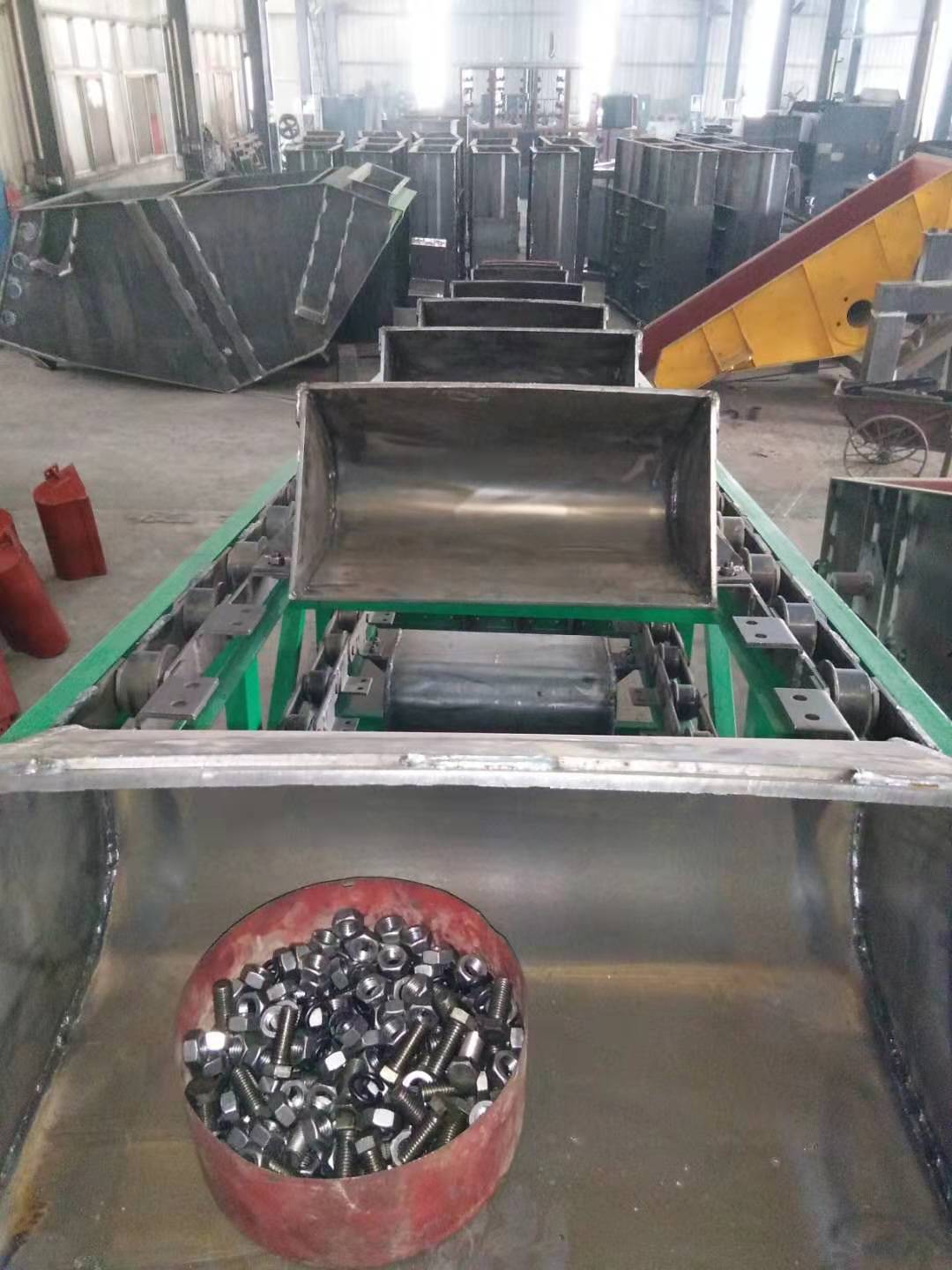 鵬威機械生產的鏈斗輸送機-鏈斗機-撈坑鏈斗式輸送機可以做為重型和輕型,挖斗形式,輸斗形式,瀝水斗輸送等多形式統稱鏈斗輸送機。廣泛應用于電站、礦山、煤炭等行業的,進行各種松散物料的輸送;如:鍋爐灰渣、水泥熟料、礦渣、焦炭、碎石等,特別是一些溫度高、容重大、塊度大、具有鋒利銳角和磨琢性強的物料。由于鏈斗式輸送機具有布置靈活、輸送能力大、使用壽命長、維護量小、運行成本低、輸送角度大等優點而深受廣大用戶歡迎。