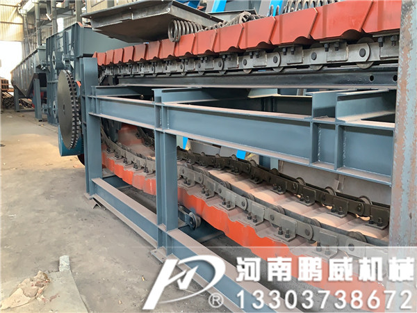 重型鏈板輸送機可以分為:輕型鏈板輸送機、中型鏈板輸送機、重型鏈板輸送機,他們的區別在:板材、配套裝置、整機設計有所不同,在自己的輸送領域里各得其所,通常輸送100mm以下的物料會推薦輕型鱗板輸送機每小時的產量在50t左右,中型鱗板輸送機可輸送300mm以下的物料產量在每小時300t以下的都可完成,一般情況下中型鱗板輸送機要比輕型鱗板輸送機槽板厚度要厚一點。而重型鱗板輸送機輸送機就厲害了,500mm以上的都可以輸送,像1米左右的大石頭來往送料毫不費力,輸送產量每小時400噸到1000噸均可定制。