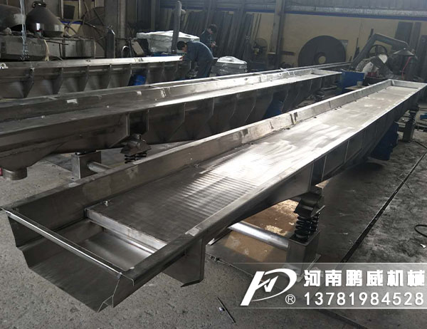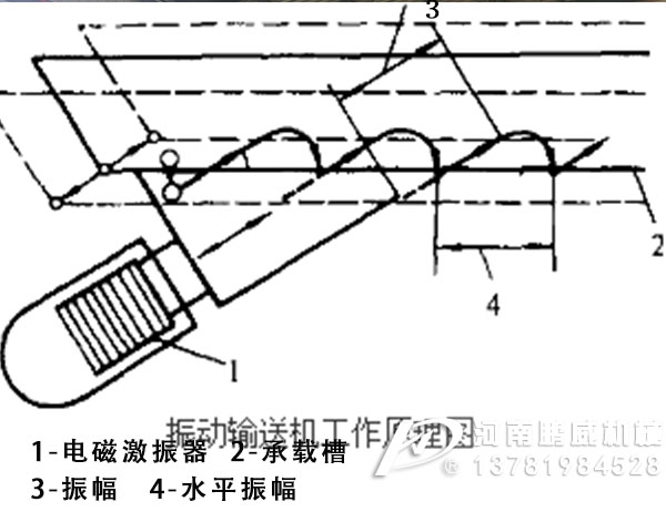 桿端部作往復(fù)運(yùn)動,激起料槽作定向振動。促使槽內(nèi)物料不斷地向前移動。一般采用低頻率、大振幅或中等頻率與中等振幅。