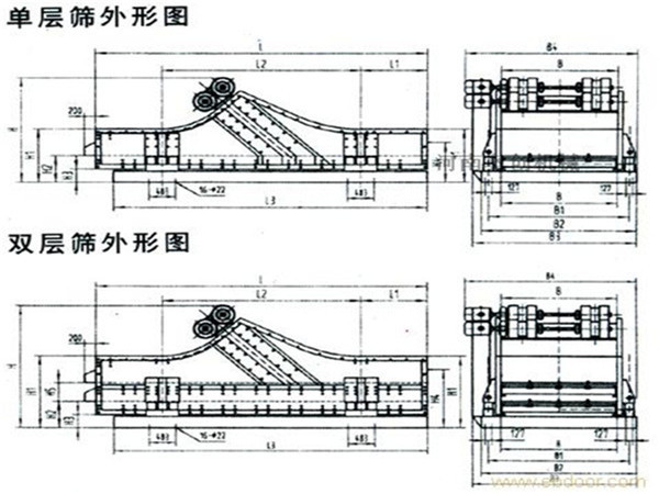 4、振動電機固定采用高強度螺栓,底部彈簧為橡膠彈簧,彈簧的質量會影響振動電機的壽命。篩板固定的密度高,篩板中打有加強筋。