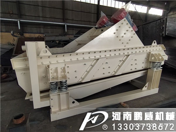 鵬威機械生產的尾礦砂高頻篩-洗砂高頻脫水篩-水洗砂脫水回收篩分一體機設備兩組偏心質量產生的離心力沿振動方向的分力疊加,反向離心抵消,從而形成單一的沿振動 方向的激振動,使篩箱做作往復直線運動。具有結構先進,堅固耐用,噪音低,維修方便等優點。適用于選煤、選礦、電力、化工、輕工等部門,對中、細粒度物料進行干、濕式篩分或脫水、脫介、脫泥。